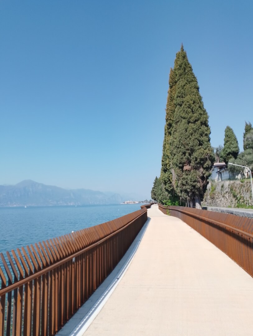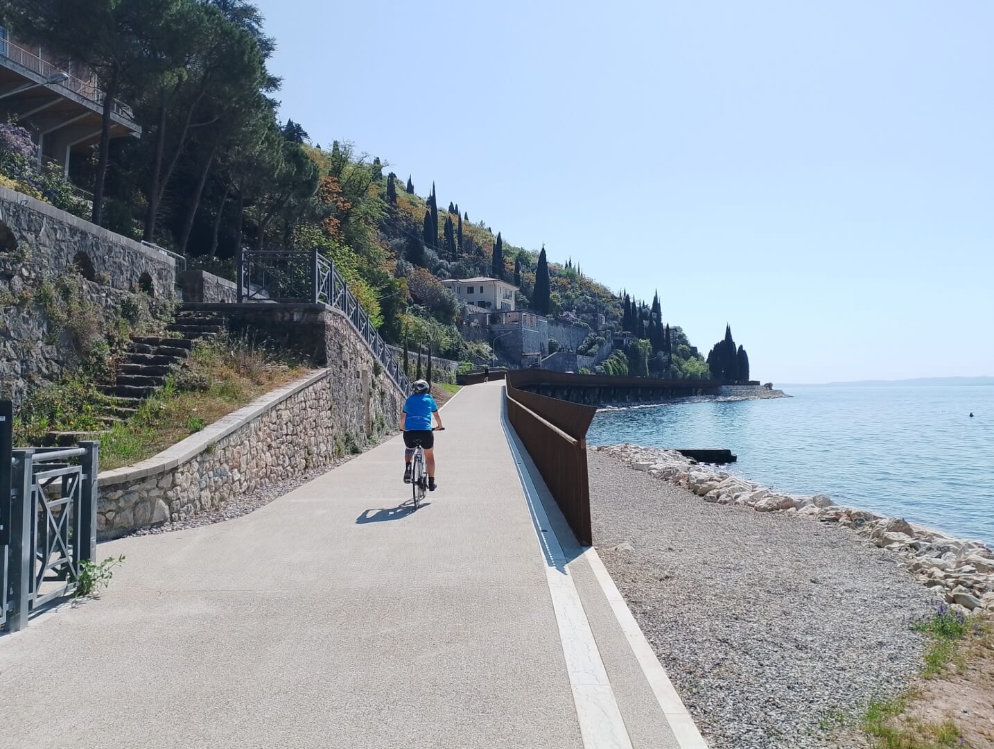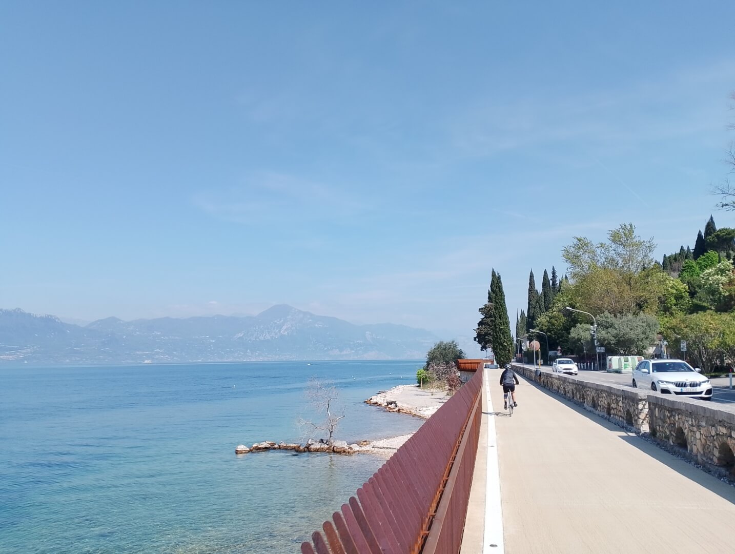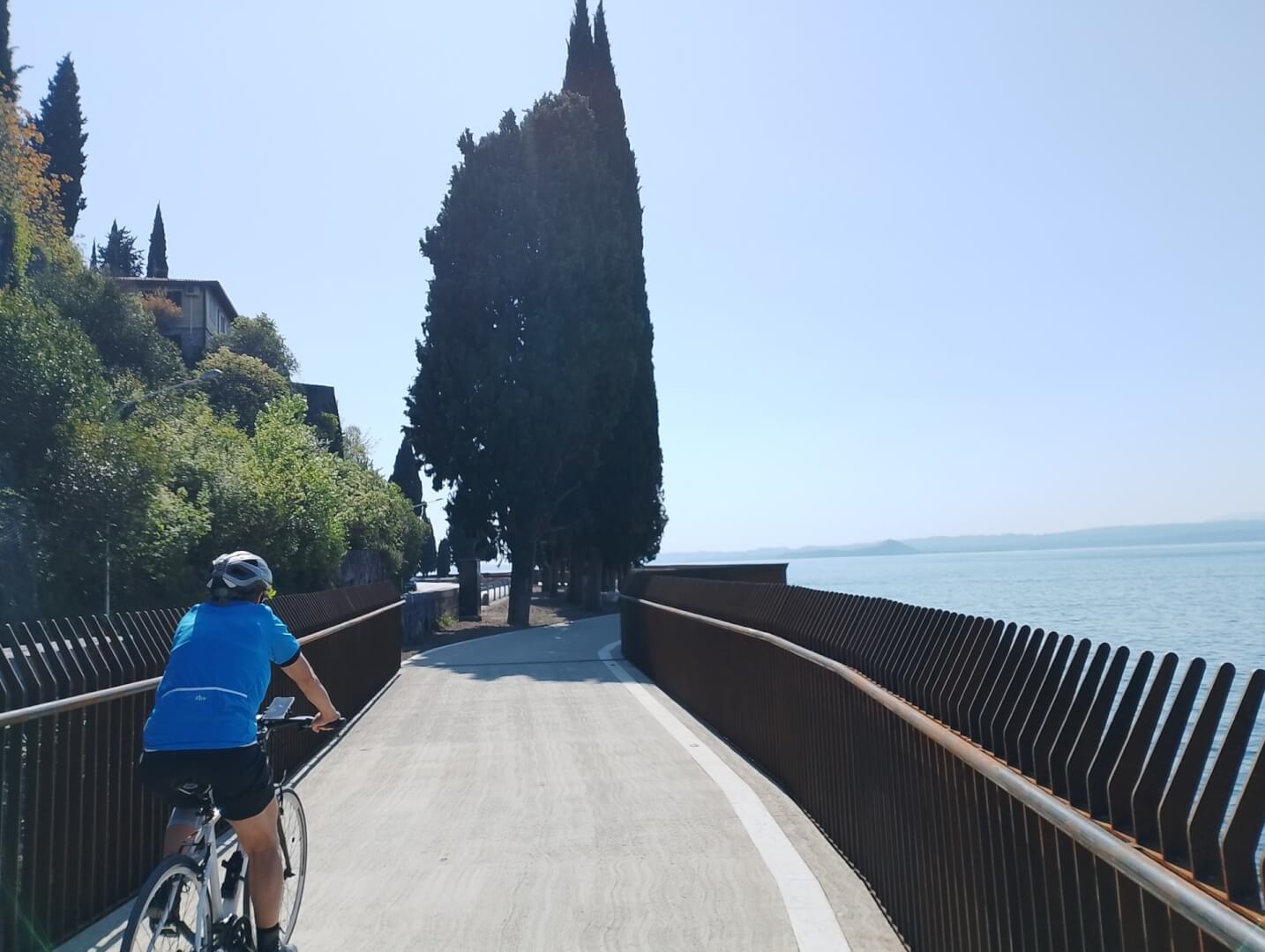 Die Garda-Radroute bietet wieder einmal atemberaubende Ausblicke! Dieser Abschnitt, der Punta San Vigilo mit Torri verbindet, präsentiert den See in seiner ganzen Schönheit.